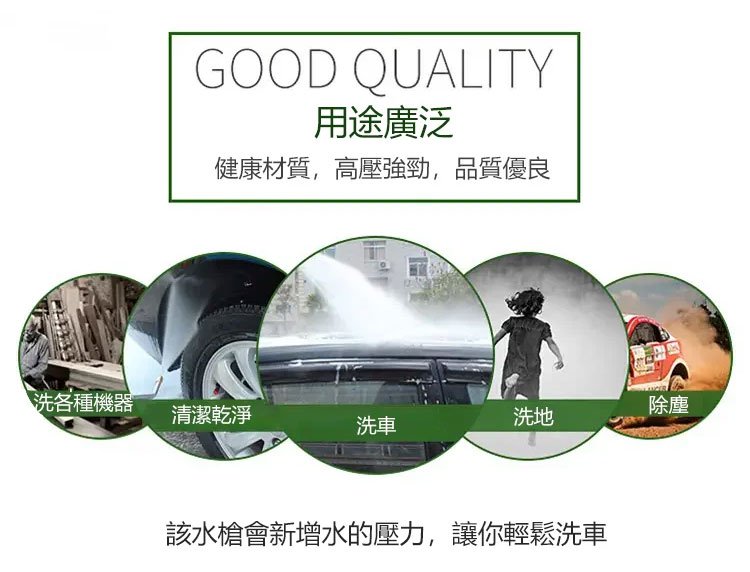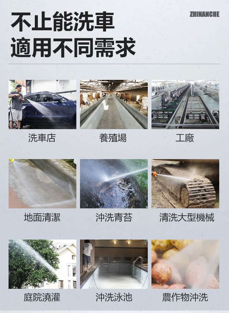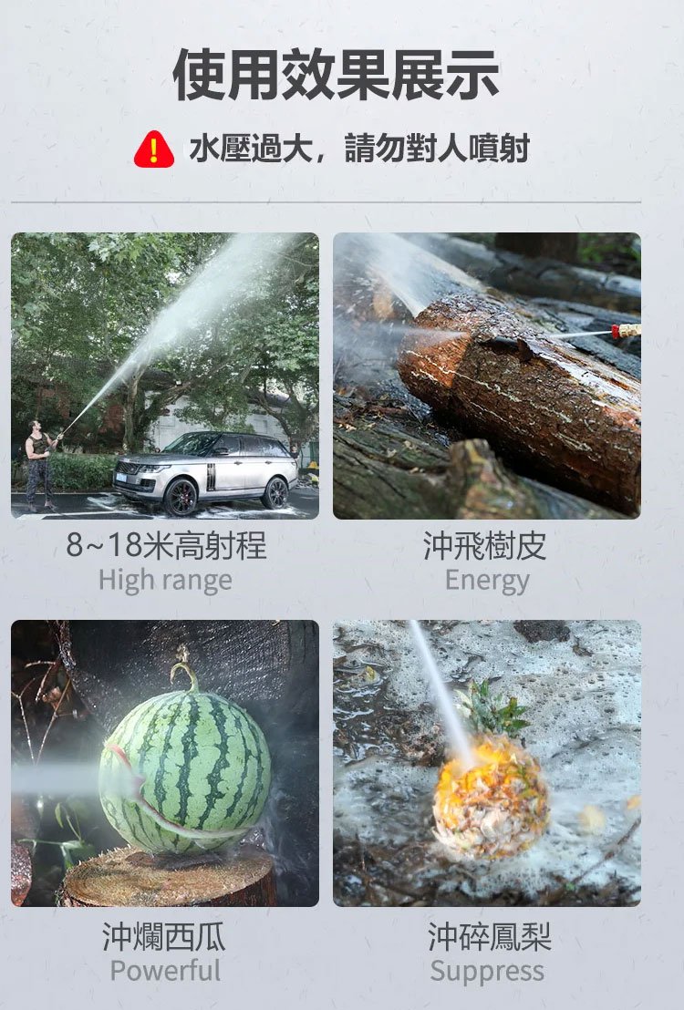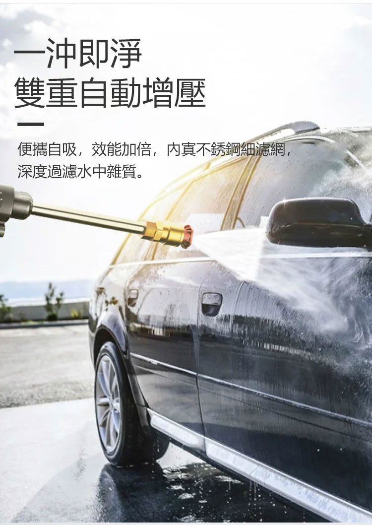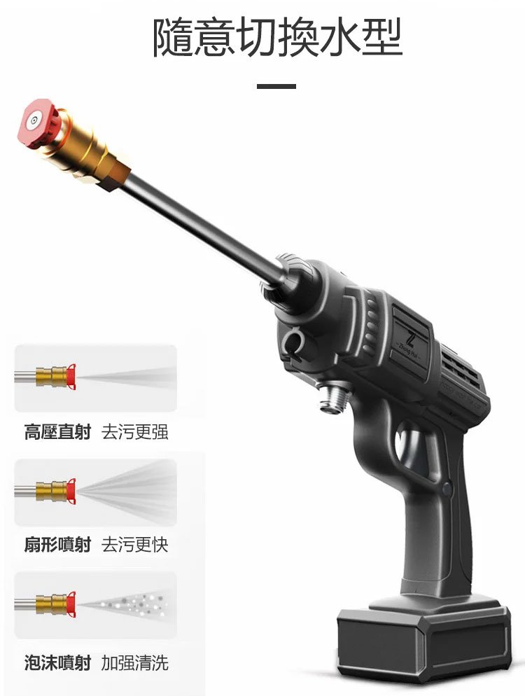 多功能無線洗車水槍,無需水泵,便攜式自吸,雙重自動增壓,出水量是普通高壓水槍的幾十倍,高壓直射、扇形噴射、泡沫噴射, 多種噴灑模式,自由調節水花,讓打掃清洗更加輕松!
